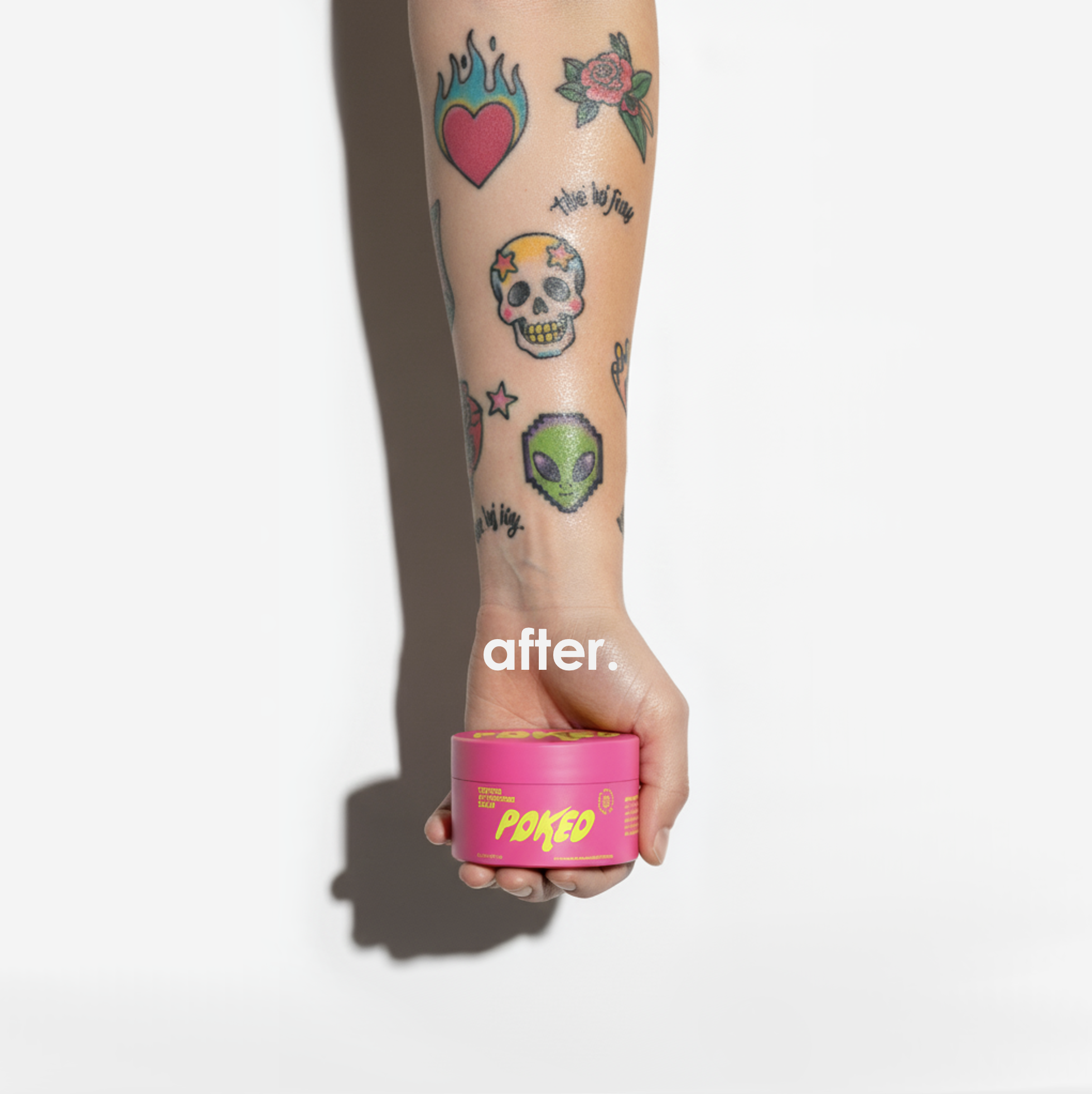 Using both the poked balm and soap on my brand new tattoo and so far they are awesome. The soap is light and gentle, smells amazing and doesn’t dry my skin. The balm smells like a vacation and I love the premium ingredients like peptides to help restore skin.